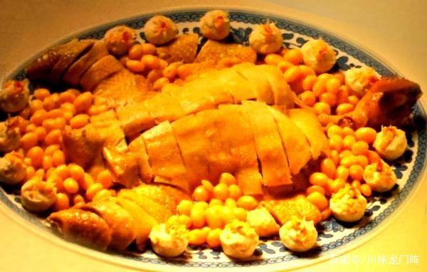 大蒜石爬鱼、白果烧鸡、茅梨肉丝、鸡皮慈笋、四鲜肉脯、炝锅鲤鱼、虎皮肉卷、红烧牛掌、魔芋烧鸭、荷叶蒸肉。
